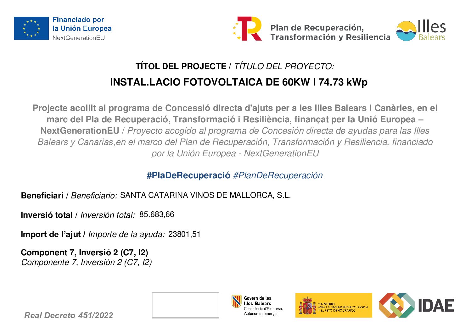 Sencelles (Illes Balears), anegre@bodegasantacatarina.com